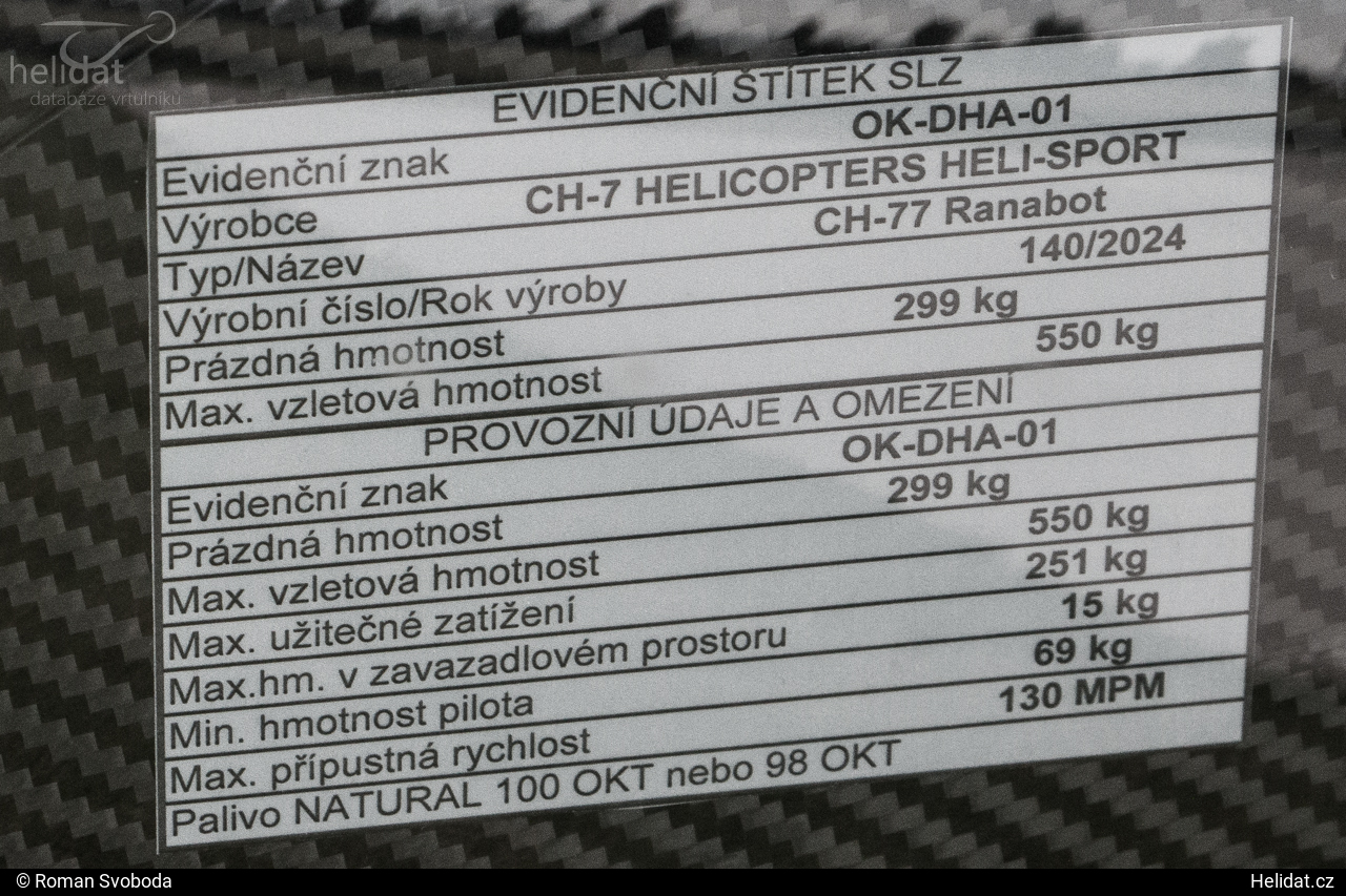 Heli-Sport CH-77 Ranabot registrační značky OK-DHA 01 (v.č. 0140) je ultralehký italský rekreační dvoumístný vrtulník s dvoulistým nosným rotorem a dvoulistým vyrovnávacím rotorem. Je poháněn jedním motorem EPA Power SA 914-1400.Časová osa vrtulníku