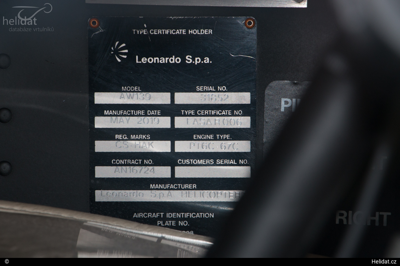 Leonardo AW139 registrační značky OK-AGE (v.č. 31852) je střední italský víceúčelový 17místný bílý vrtulník. Je vybaven zatahovacím kolovým příďovým podvozkem. Je poháněn dvěma motory Pratt & Whitney Canada PT6C-67C.Časová osa vrtulníku